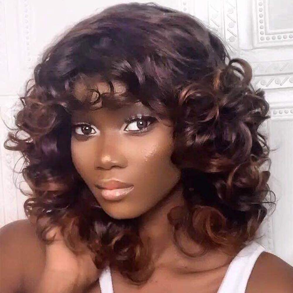 Amazon Com Short Afro Curly Wigs With Bangs For Black Women Kinky Curly Hair Wig 2 Tone Ombre Dark Brown Big Bouncy Fluffy Curly Wig Beauty Personal Care